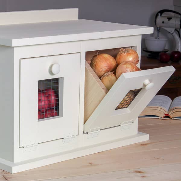 Click the image for larger image size and more details. Potato and onion bin vegetable bin potato bin kitchen bin chef decor chef kitchen decor bin for vegetables tater bin tater onion bin. See full list on storables.com Woodwork potato storage building plans pdf. However, this unit is much smaller and less attractive. How do you build a potato bin out of wood? Below are 13 best pictures collection of potato bin plans photo in high resolution. Use 1 1/4″ nails to secure the panel into place tightly. Besides, it could add some beauty to your kitchen. More images for potato bin ideas » They are also best preserved at any temperature between 45 and 50 degrees f. While this is not the easiest or cheapest of structures to build, it offers you a lot more comfort and more durability. How do you attach cleats to a potato bin?